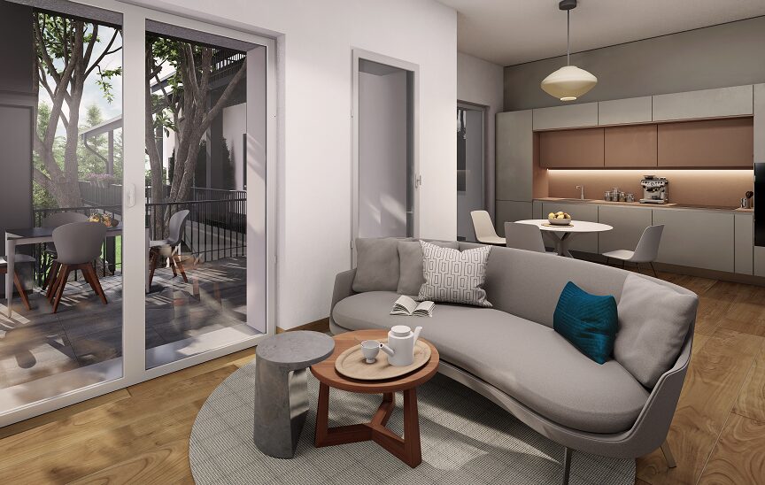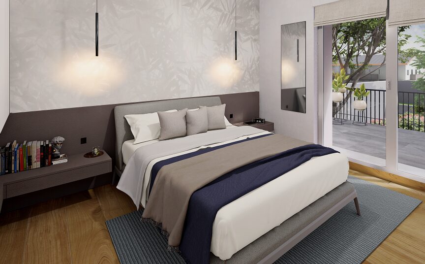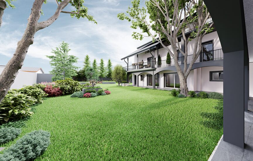 Tutte le unità godono di superfici generose, ampliate ulteriormente da terrazzi o logge che creano un collegamento diretto fra interno ed esterno, affacciate su un ampio giardino arricchito da piante secolari che assicurano tranquillità e proteggono la propria privacy individuale.