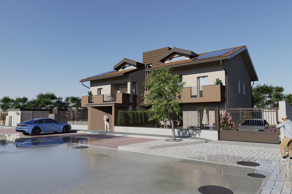 L’edificio si svilupperà su piano terra e primo piano ed è progettato per garantire comfort, privacy e alta qualità abitativa, inserendosi armoniosamente in un ambiente curato e riservato.